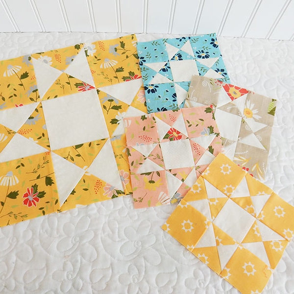 We have a great lineup of quilters quilting along with us! Our quilters used a mix of the quilt kit (we are sold out however you can find the full fabric requirements to make a Threadology Quilt just like ours using Little Snippets collection by Bonnie & Camille for Moda Fabrics) and their own fabrics to make their blocks. Click on each of the photos to see them up close and see what collections they used as well as tips and tricks they have to make the first block!
