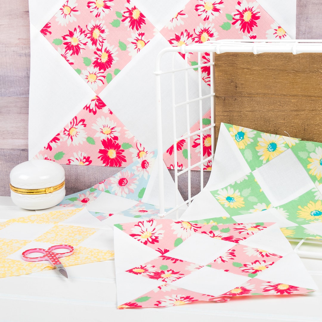 Welcome to the Fat Quarter Shop 2019 charity quilt along, the Threadology Quilt Along! We are so excited to present the third block in this year’s quilt along, the Shooting Squares Block (free pattern and video tutorial)! We are sold out of the Threadology Quilt Kit and Backing set so if you are just joining us, you can find the full fabric requirements to make a Threadology Quilt just like ours (we used the Little Snippets collection by Bonnie & Camille for Moda Fabrics). We will also be posting all the patterns and videos posted so far on our Threadology Quilt Along page!