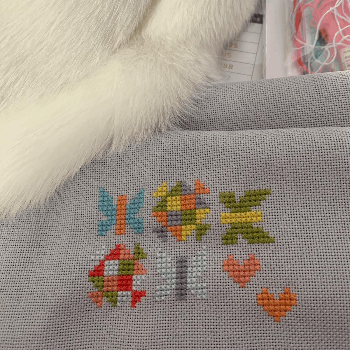 We have a great lineup of cross stitchers participating! Some are working with the called for colors, and others have chosen some lovely floss and cloth combinations. Click on each of the photos to see them up close.