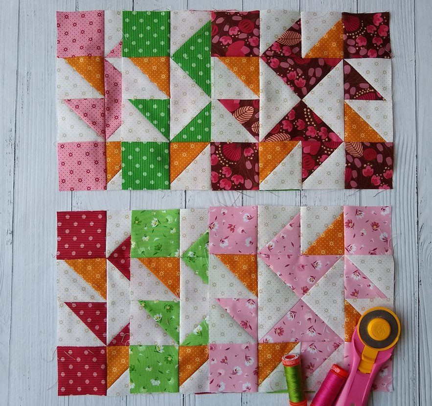 Love the look of Teresa’s block using American Gathering! Teresa – did you make the entire row using the same block colors or did you use other colors for each block? Thinking about using the same fabric line for my quilt top as well.