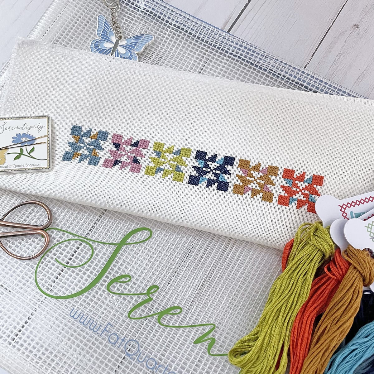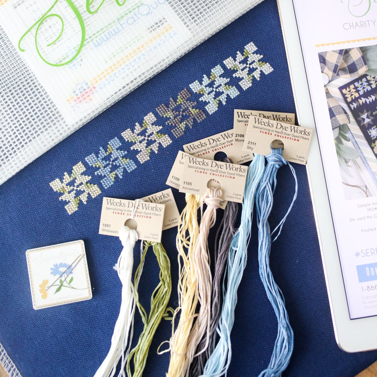 To make your cross stitch just like this one, download our complete Cross Stitch Supply List for all the details. The colors you choose are up to you, but we’ve collected some items to get your stitching off to a good start.