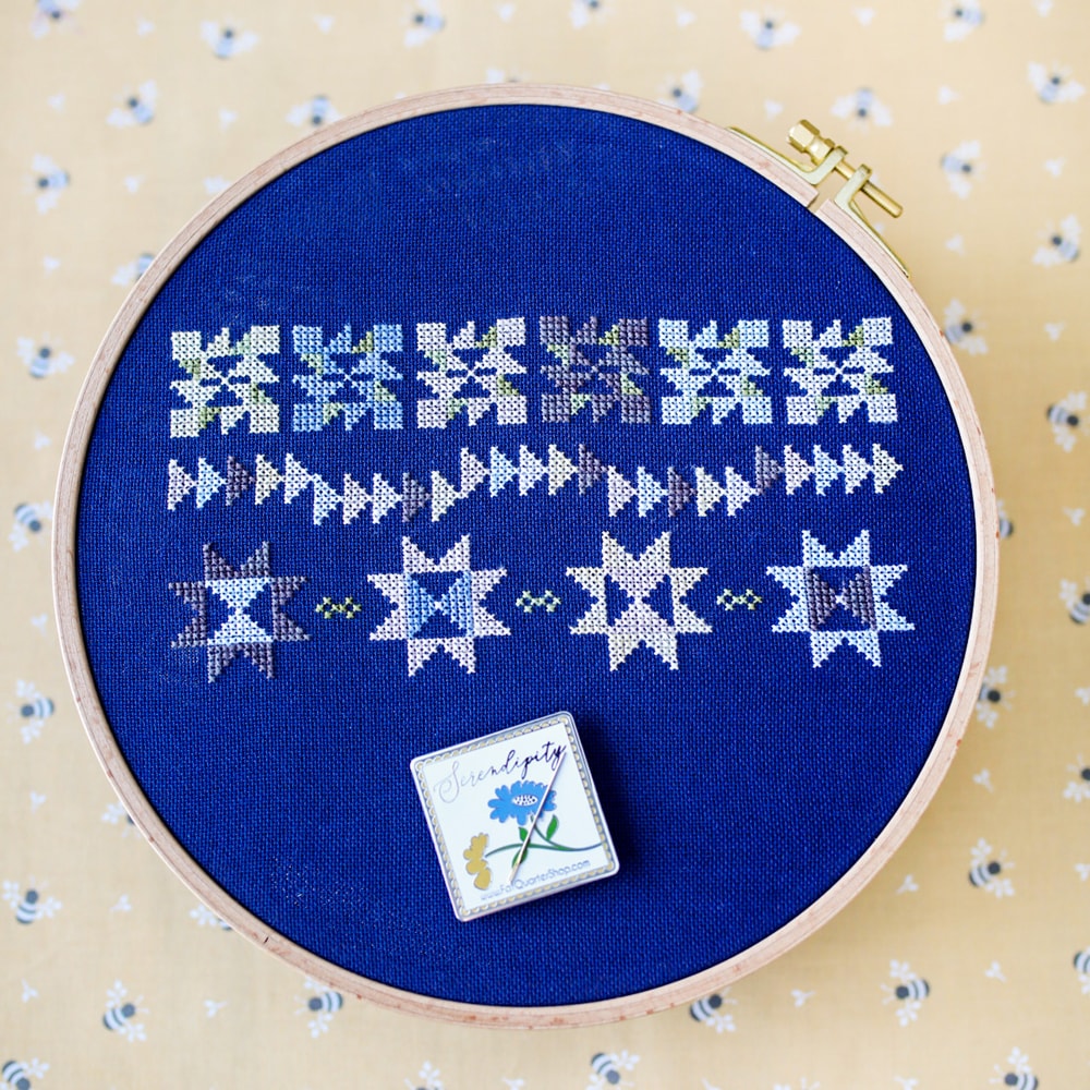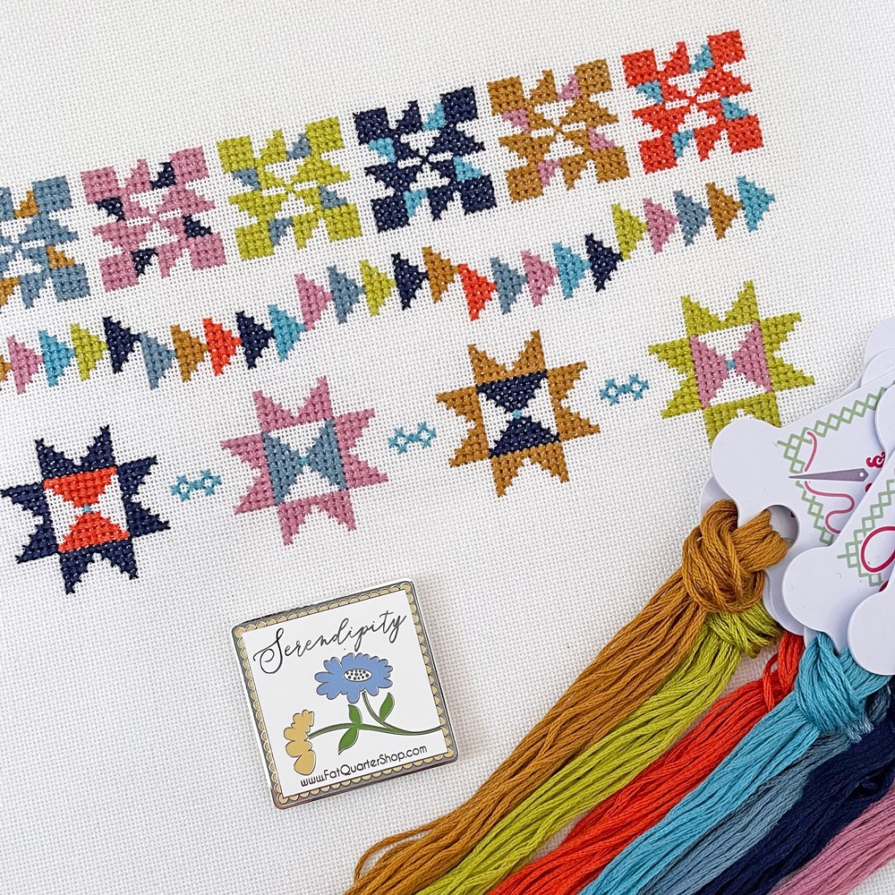 We’ve been stitching away for our Charity Stitch Along! Today we’re sharing the third part of the cross stitch pattern, the Windfall Row, for our Serendipity design, a pattern inspired by our 2021 Serendipity Charity Quilt.