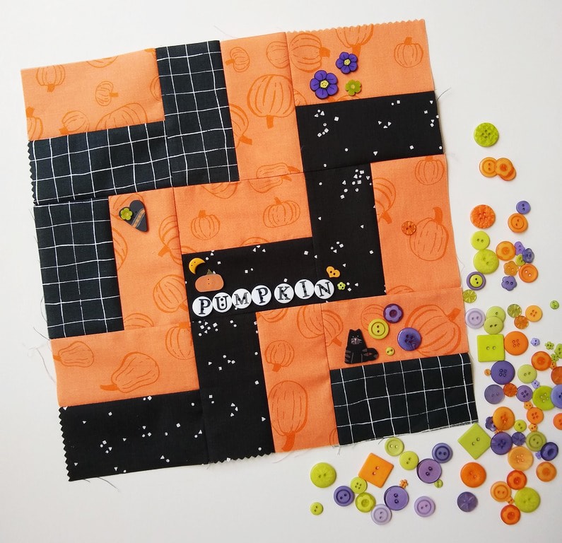Our quilty friend Pat Sloan offers two bonus projects that go perfectly with the Pumpkin Bouquet buttons. Pat’s free block pattern, Going on a Picnic can be cute on its own with some buttons or made into a larger piece accented with coordinating buttons! Pat also paired her Pumpkin Bouquet buttons with her free tablerunner pattern, Wonderful Pumpkins. You can see both of these patterns and more on her blog.