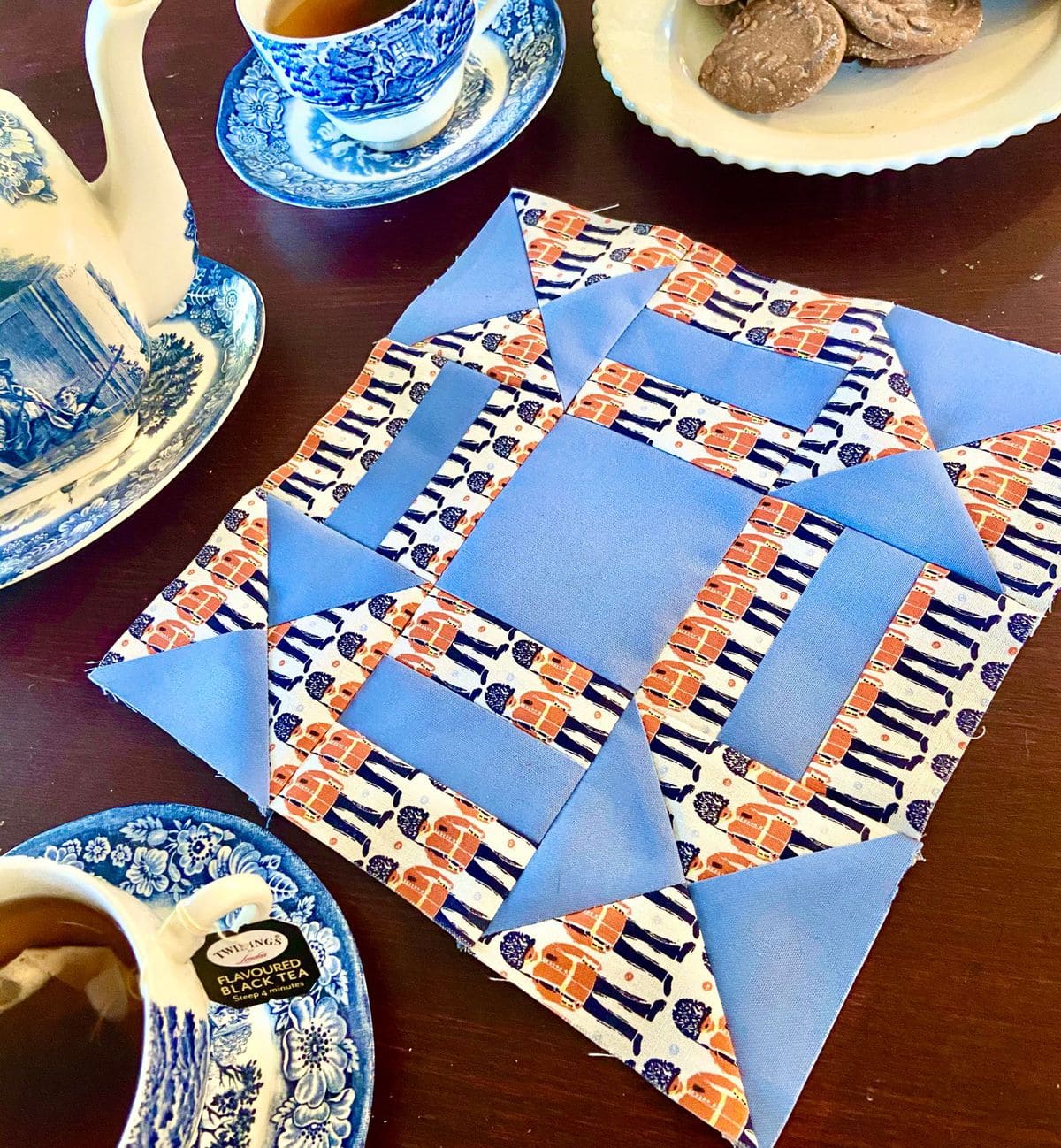 The London Roads Quilt Pattern gives instructions for making tablerunner, lap, twin and queen-sized quilts. The FREE London Roads Block Pattern makes a 9.5″ x 9.5″ unfinished block. To make your London Roads quilt just like ours, we have the London Roads Quilt Kit available! The quilt kit includes the London Roads Quilt Pattern and Sophie fabric collection for the 62.5″ x 75.25″ quilt top and binding.