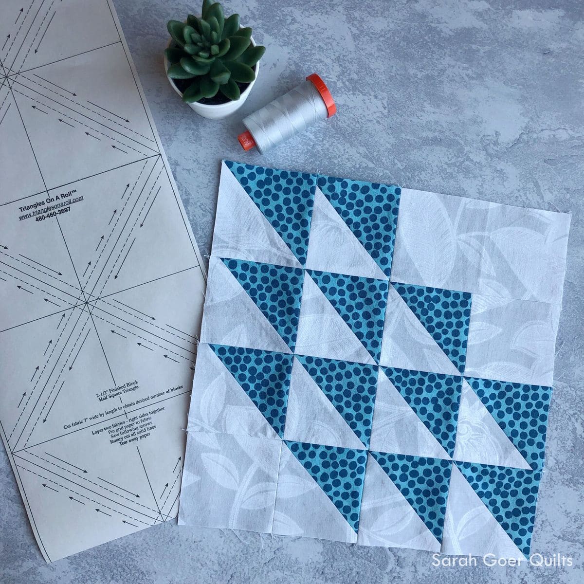 If you’re ready to sew along with us, download your FREE Ocean Waves block pattern and watch Kimberly’s video tutorial for a step-by-step guide on making your block! Kimberly shows you how to make accurate half-square triangles from Triangles On A Roll paper, making this quilt block a cinch.
