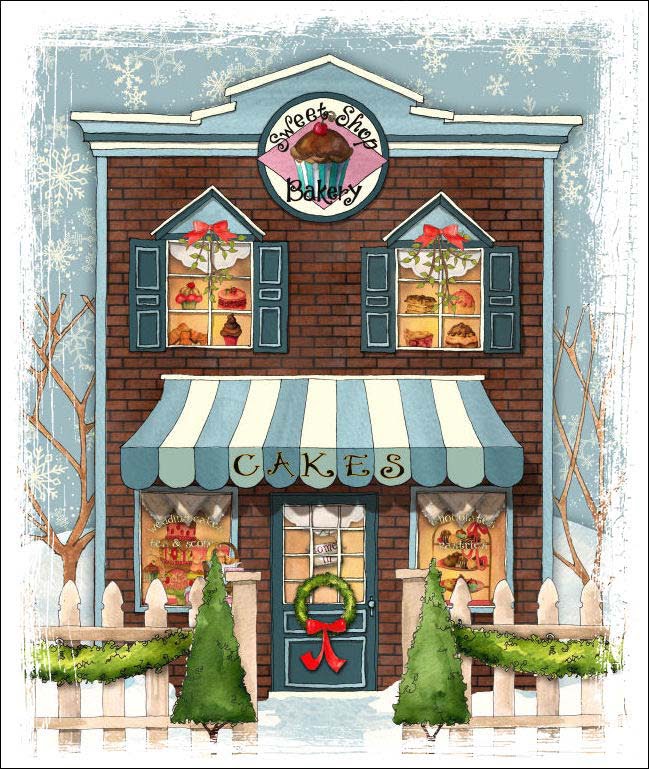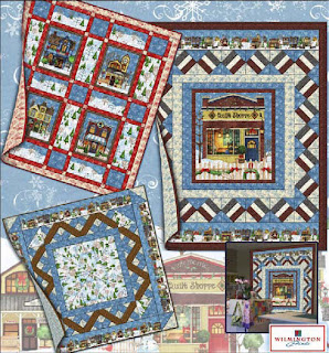 This lovely winter themed collection is making me long for December and cooler temperatures. Down in Texas, just a glimpse of this sweet, Christmastime collection and I am ready for the long, hot summer to end. Nancy Mink has me dreaming of cobblestone streets, soft snow and small town shops. Her collection All Around the Town for Wilmington Prints has just the right amount of small town charm and is packed full with Christmas cheer.