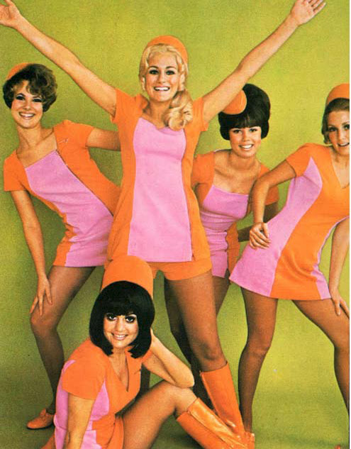 A:1964. Color, color, color. Fashion was geometric, stewardesses looked like models and cars had a lot of chrome. Architecture was modern and furniture was sleek. Prints reigned supreme. Bold blocks of color, over-sized flowers and paisley. Everything was technicolor. Conversation was sparkling, music was sexy and drinks were bubbly. 1964 was the beginning of the end of a beautiful era.