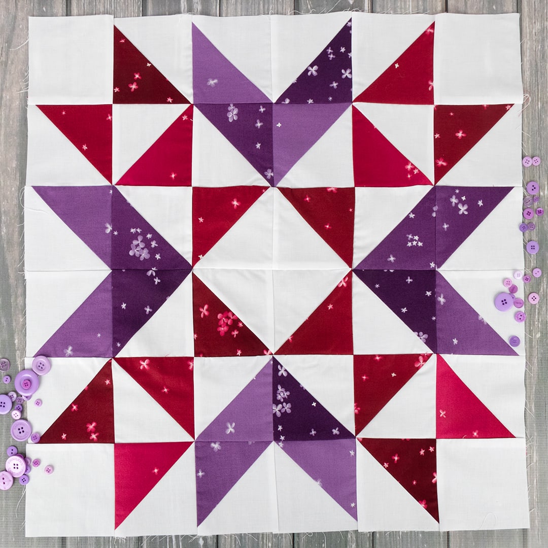 The quilt is divided into three parts. Every two weeks, we’ll release new cutting instructions for that part. The free cutting instructions specify the exact fabric and triangle paper amounts needed for this quilt. When paired with the book, you’ll have all the information you need to make it. The quilt is divided into three parts – the center block, outer blocks, and finishing. Here are the release dates: