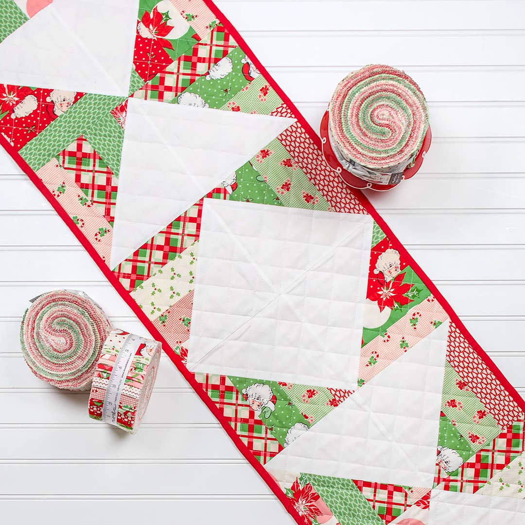 For the third tablerunner pattern in this list, we’re revisiting the High Roller Tablerunner that we released to celebrate a previous National Sew A Jelly Roll Day! Quilters who are head-over-heels for versatile patterns, you’re going to love this one. The FREE High Roller Tablerunner Pattern offers five different layout options for you to pick from! Once you’ve downloaded your free pattern, roll on over to the Behind The Seams Livestream Tutorial to learn how to make it.