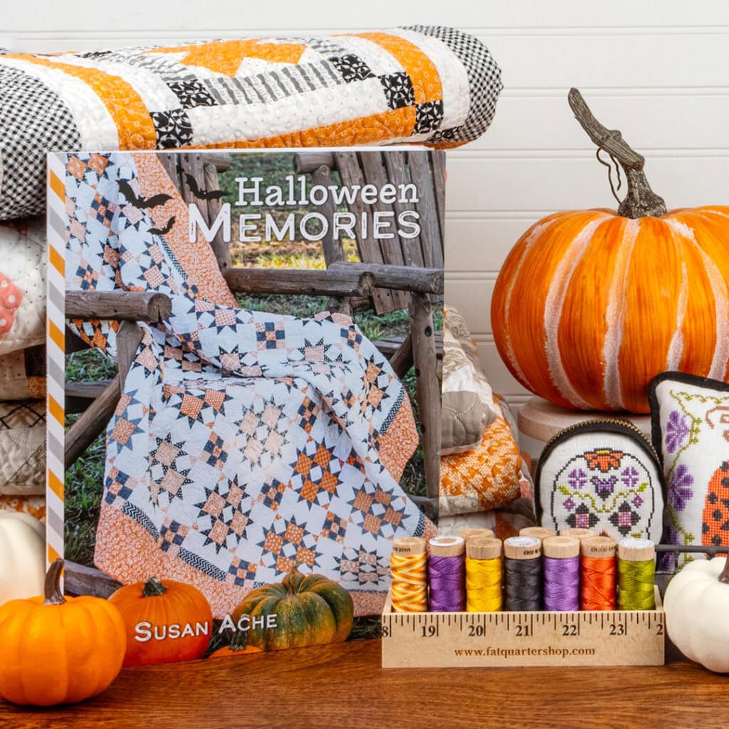 Indulge in your ghoul-ty pleasures by shopping some of our Monthly Sales and exploring all the Halloween Fabric in stock! For the month of October, all of the Halloween Quilt Patterns and Halloween Cross Stitch Patterns are on sale. The Book Of The Month is Halloween Memories by Susan Ache, and if it’s not already in your quilty library, now is the perfect time to pick it up!