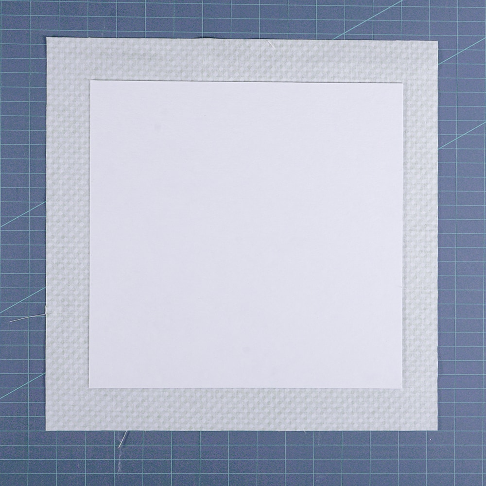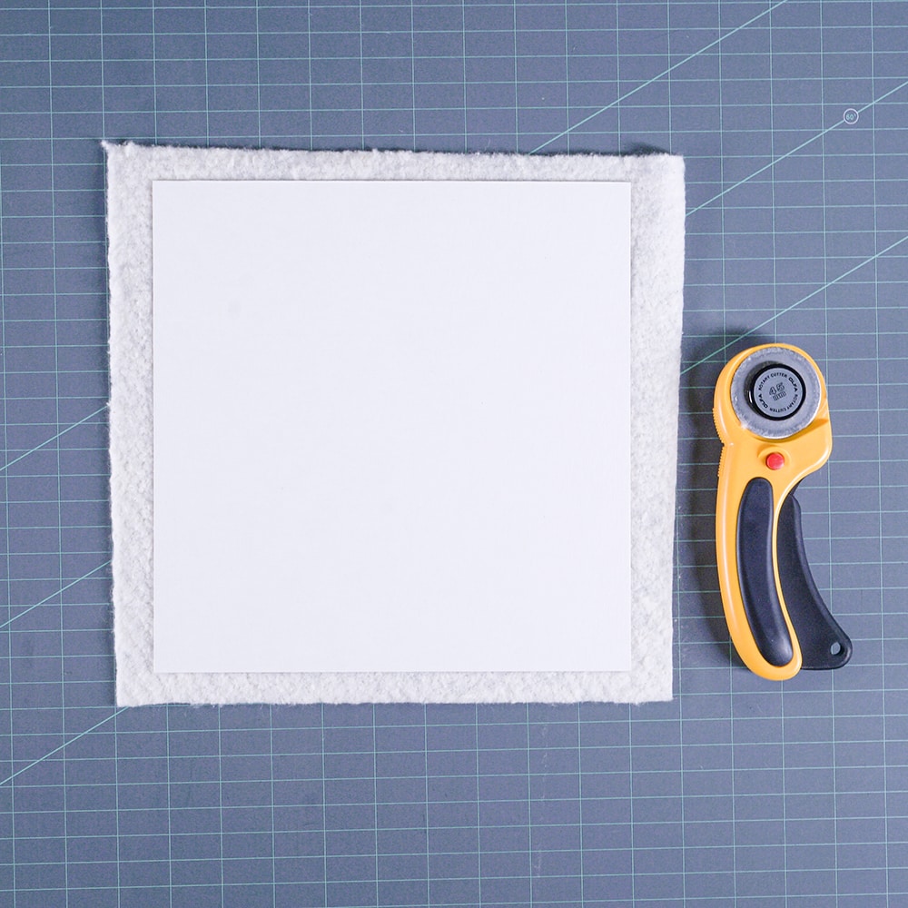 3. Peel off the liner on the sticky board and place the sticky side to the batting. Cut around the sticky board so that the batting is flush to the edges.