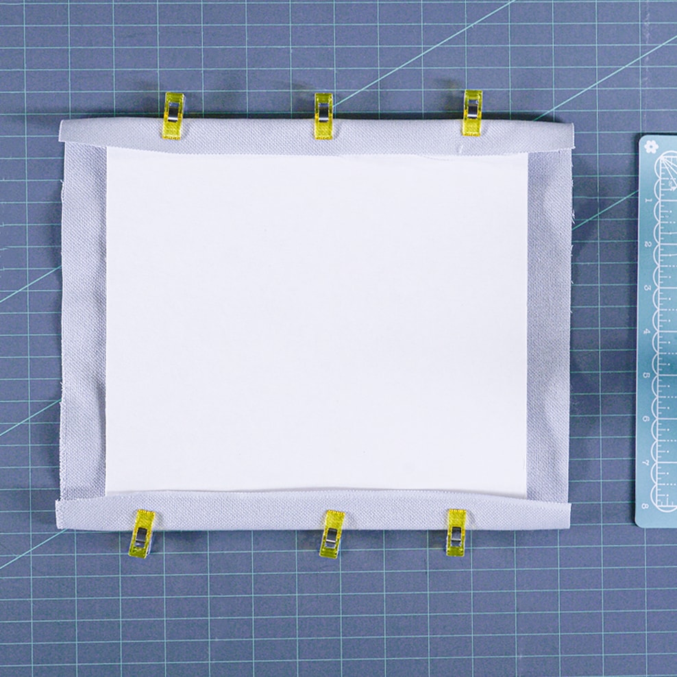 TIP: Use Wonder Clips to hold the fabric before you hot glue to check the placement on the front.