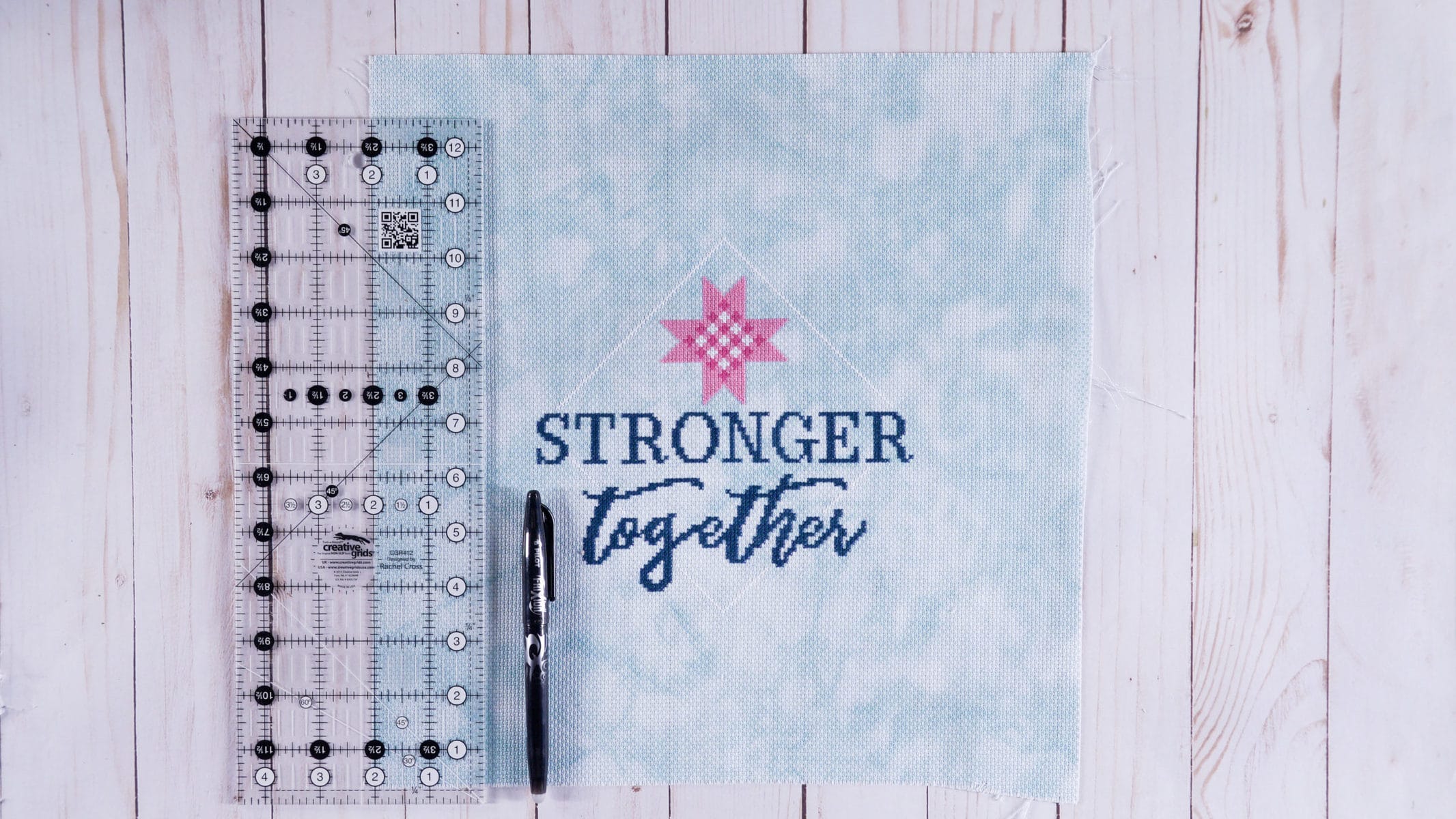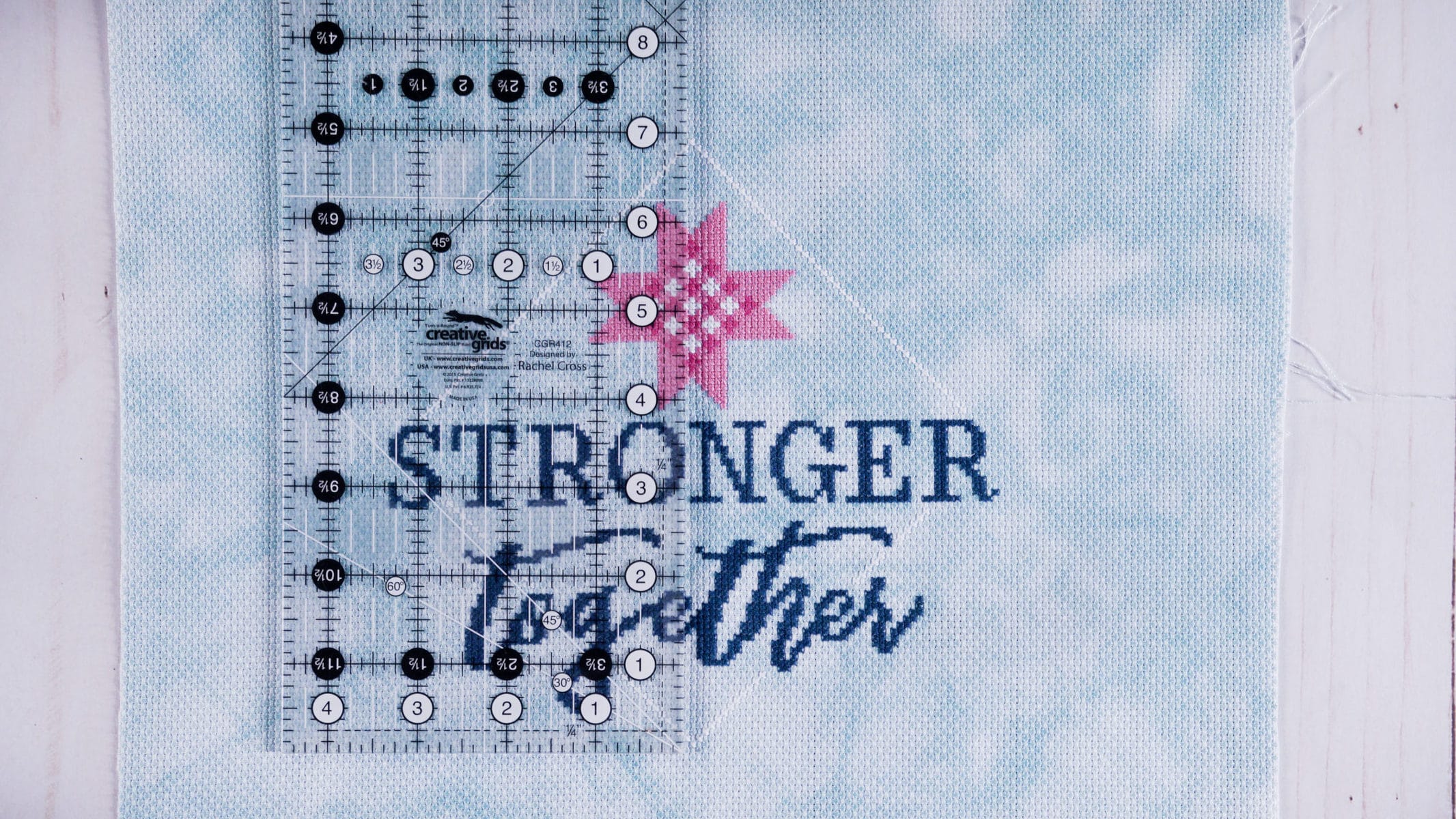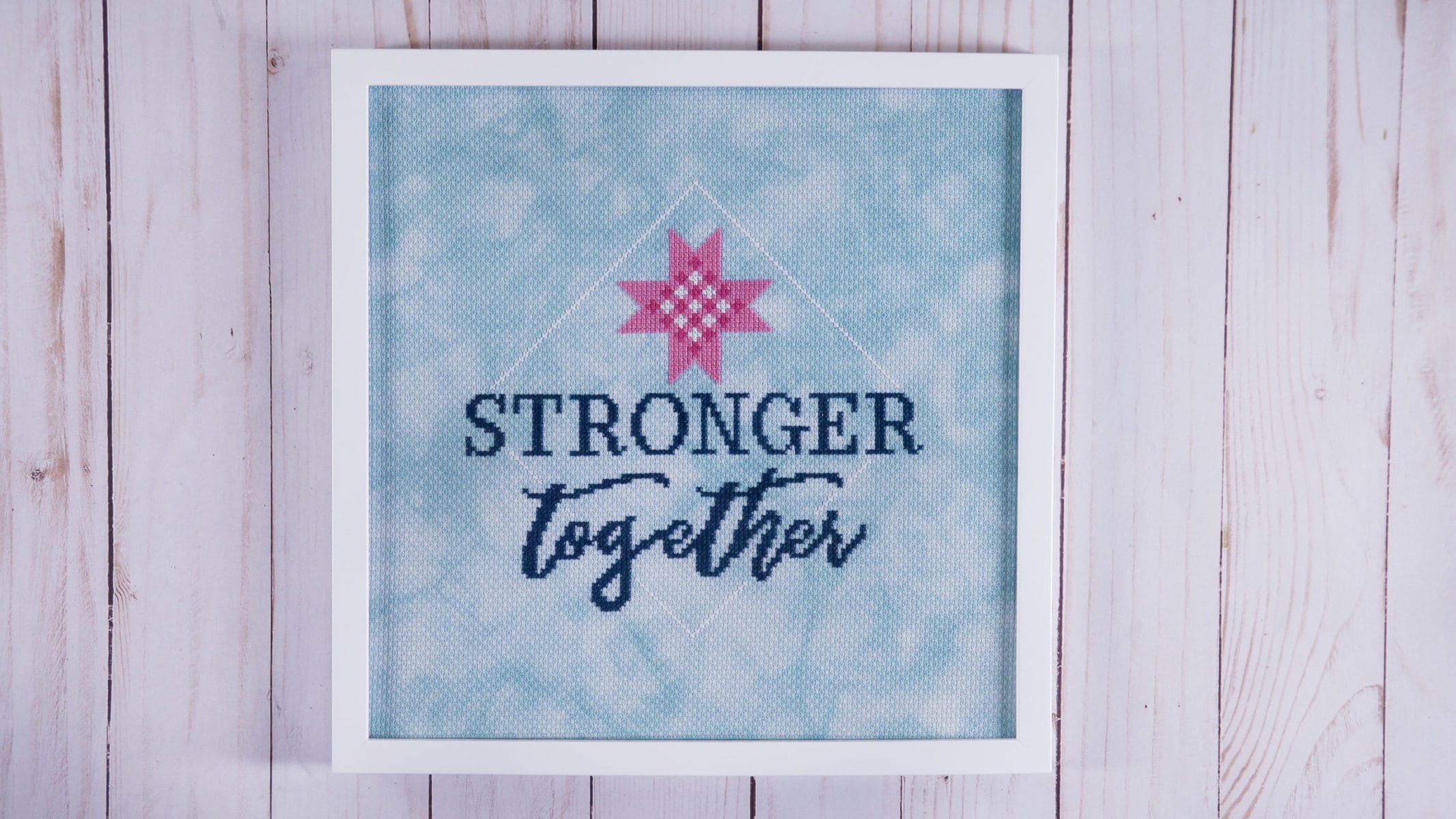 The Stronger Together Cross Stitch Pattern coordinates with the quilt, and also has a bonus cross stitch chart featuring the “Stronger Together” statement, so you can choose to stitch either chart.