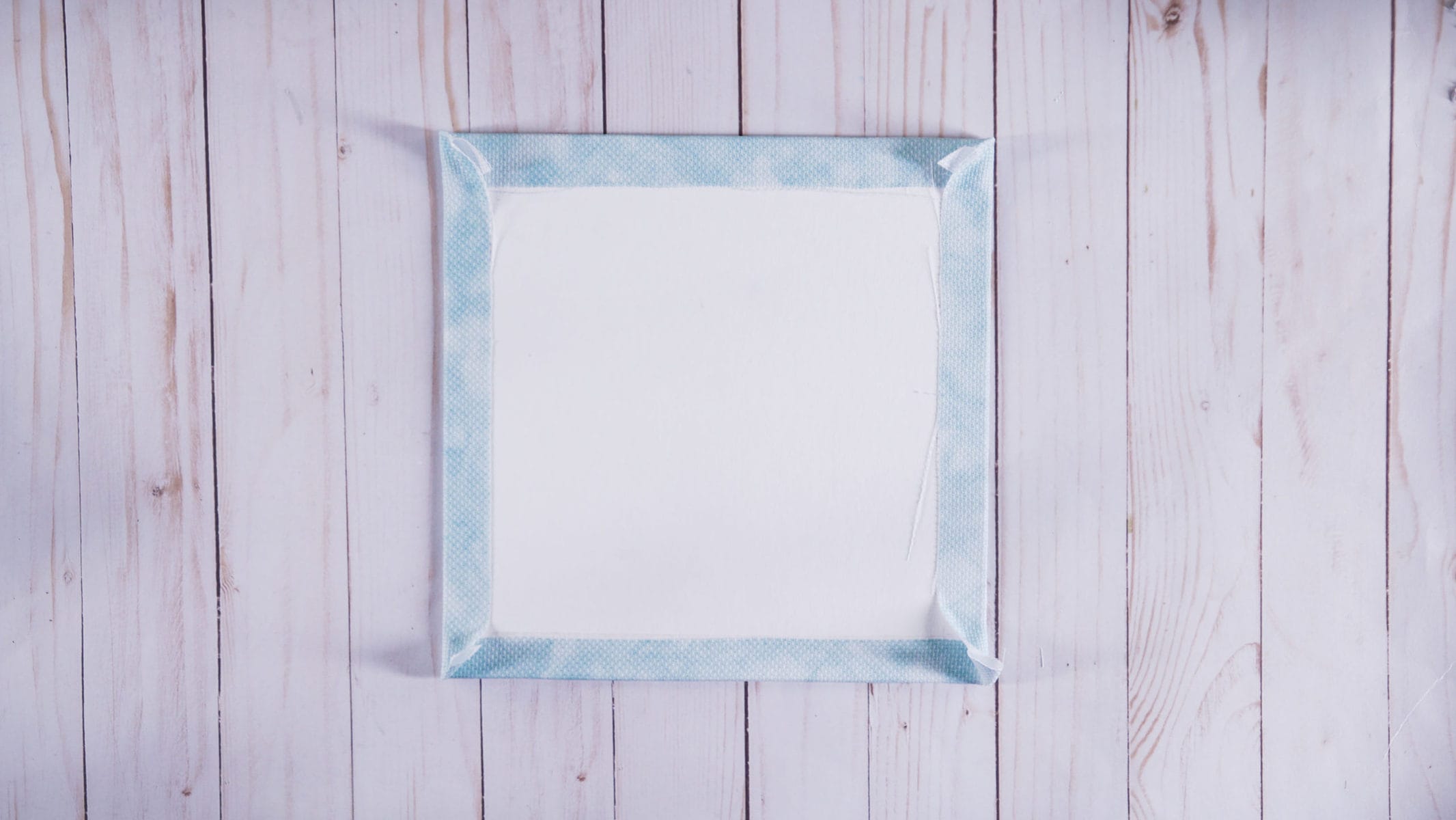 3. To center your stitch piece within this frame, take the width of your frame (10”) minus the width of your stitch piece (7”), divide by 2, and that will give you the margin on the left and right to draw your lines (1.5”). Repeat this step to find the margin on the top and bottom to draw your line.
