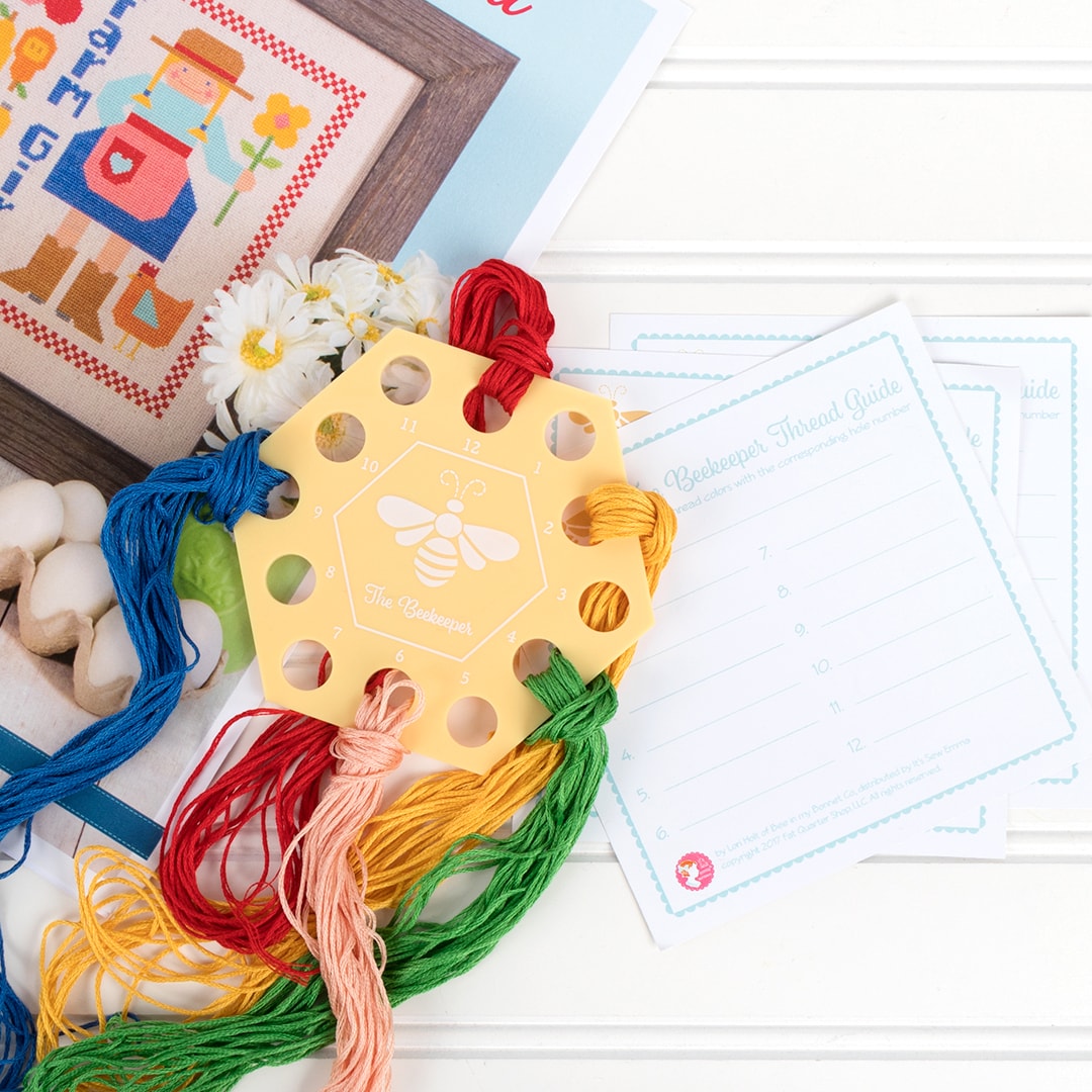 1. Make the Happy Farm Girl Cross Stitch Pattern. We have the new Bee Keeper Thread Minder and Floss Flower Thread Bobbins to help you keep you threads in place, untangled and organized (to see more of their versatility, check out our Beekeeper and Floss Flower video).
