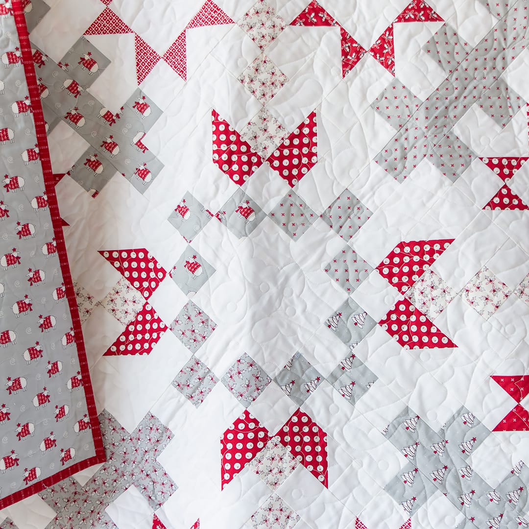 We’re wrapping up our 4-block Jelly Snowflake Mystery Quilt Sew Along this week with the final pattern and tutorial. If you’ve been following along, you know that each week in July we released one video tutorial with a FREE pattern. We had a lot of fun seeing photos of your Jelly Snowflake Quilts on social media and sewing along with our blogger friends. Read on to see their finished quilts and download the finishing pattern.