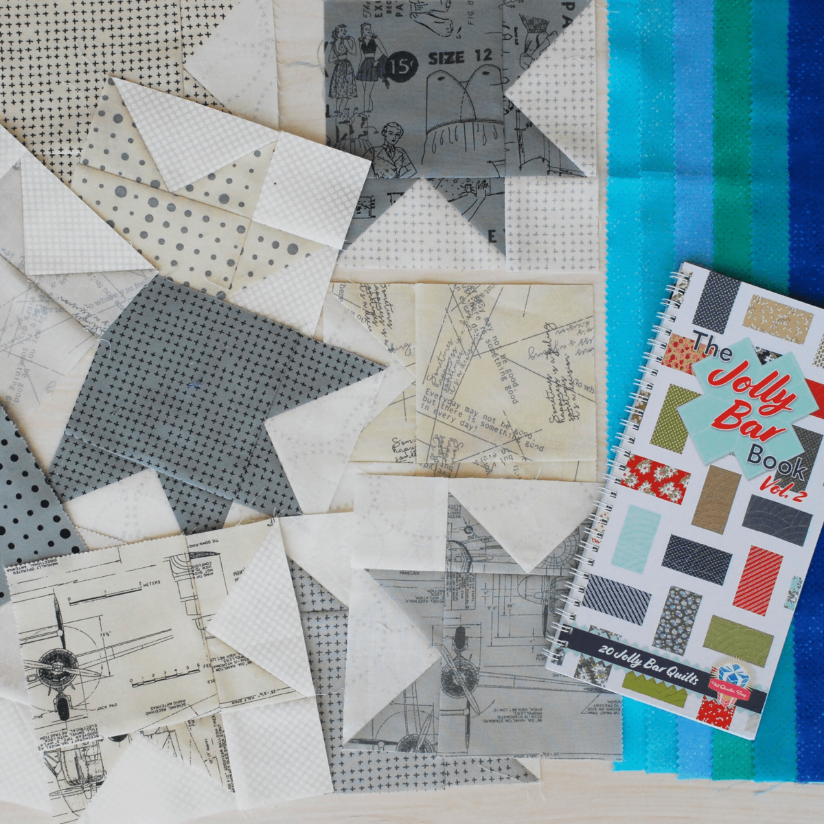 We have the full Fabric Requirements HERE for you to use. You’ll need a copy of the Jolly Bar Book Volume 2. *Please note: Pre-washing and starching Jolly Bars is not recommended for patterns in this book. Make sure to measure twice before cutting and plan out fabric placement for this quilt.
