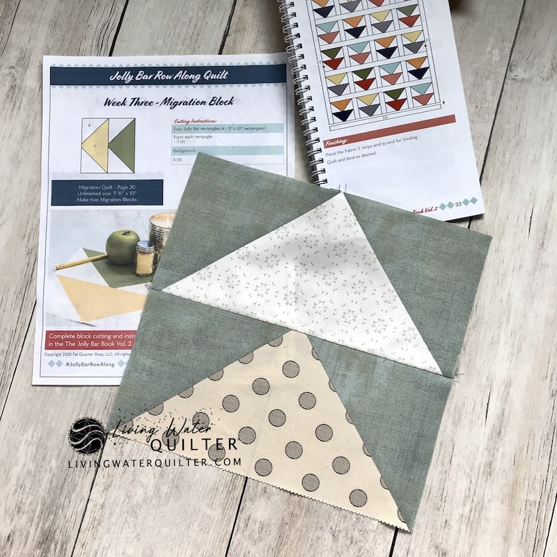 We have the full Fabric Requirements HERE for you to use. You’ll need a copy of the Jolly Bar Book Volume 2. *Please note: Pre-washing and starching Jolly Bars is not recommended for patterns in this book. Make sure to measure twice before cutting and plan out fabric placement for this quilt.