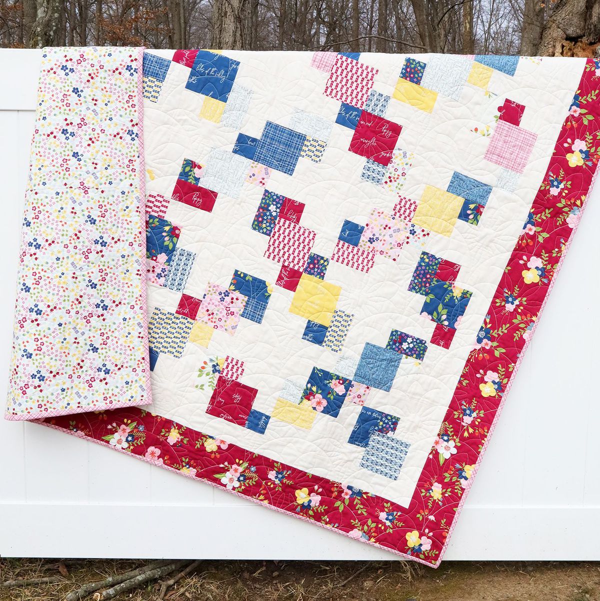 The FREE Layer Cake Lollies Quilt Pattern features instructions to make the 56.5″ x 56.5″ quilt featuring the Flowers For Freya fabric collection by Linzee McCray for Moda Fabrics. We also have a new video tutorial that will give you all the tips and tricks on putting this delicious quilt together!
