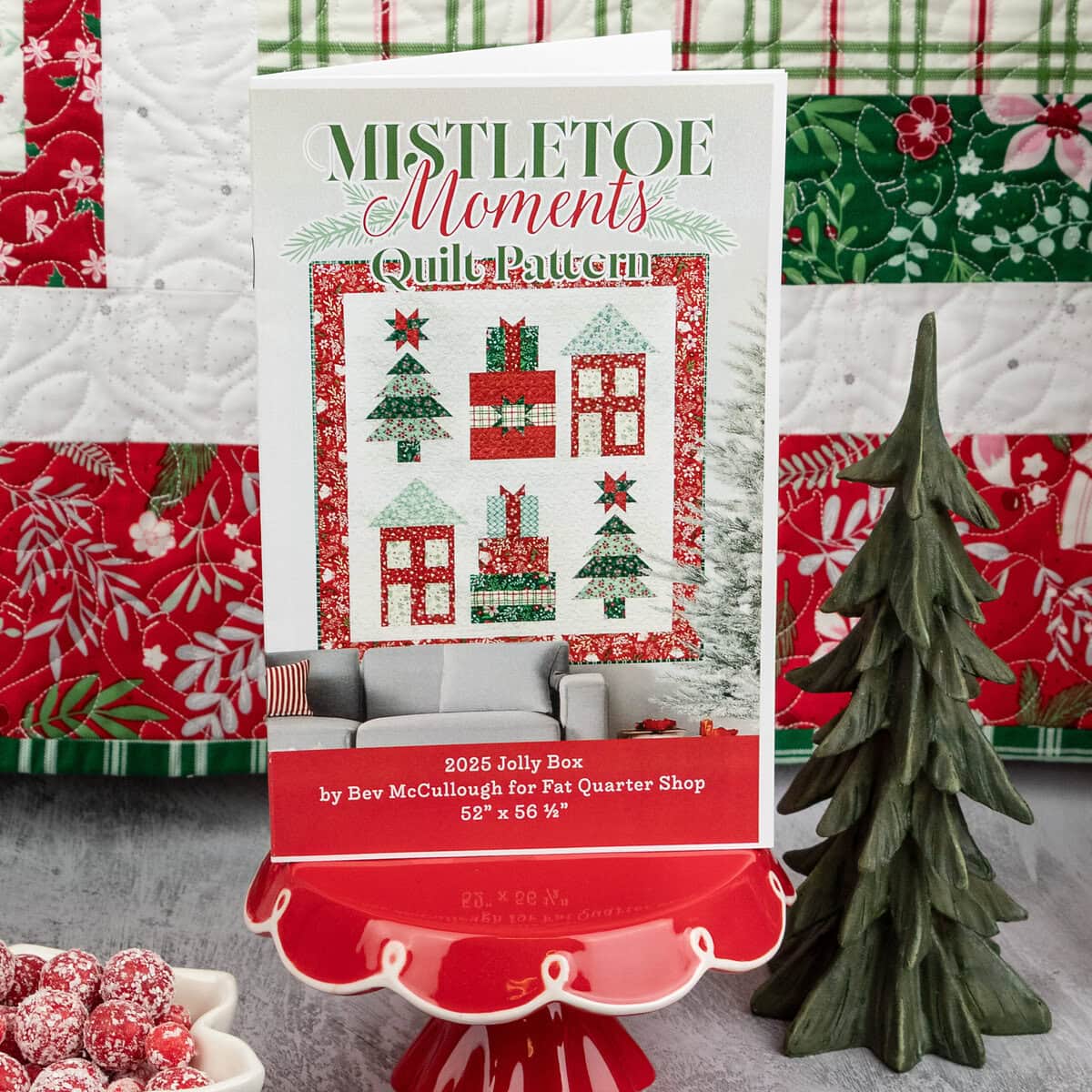Celebrate the season with the exclusive Mistletoe Moments Quilt Pattern by Beverly McCullough, only at Fat Quarter Shop! This pattern features cheery houses, hanging mistletoes, festive trees, and an abundance of wrapped gifts, perfect for bringing holiday cheer to every corner of your home. With its merry details and cozy design, it makes a wonderful addition to your holiday décor. Whether displayed on a wall, draped over the couch, or gifted to someone special, it’s a merry make you’ll treasure year after year!