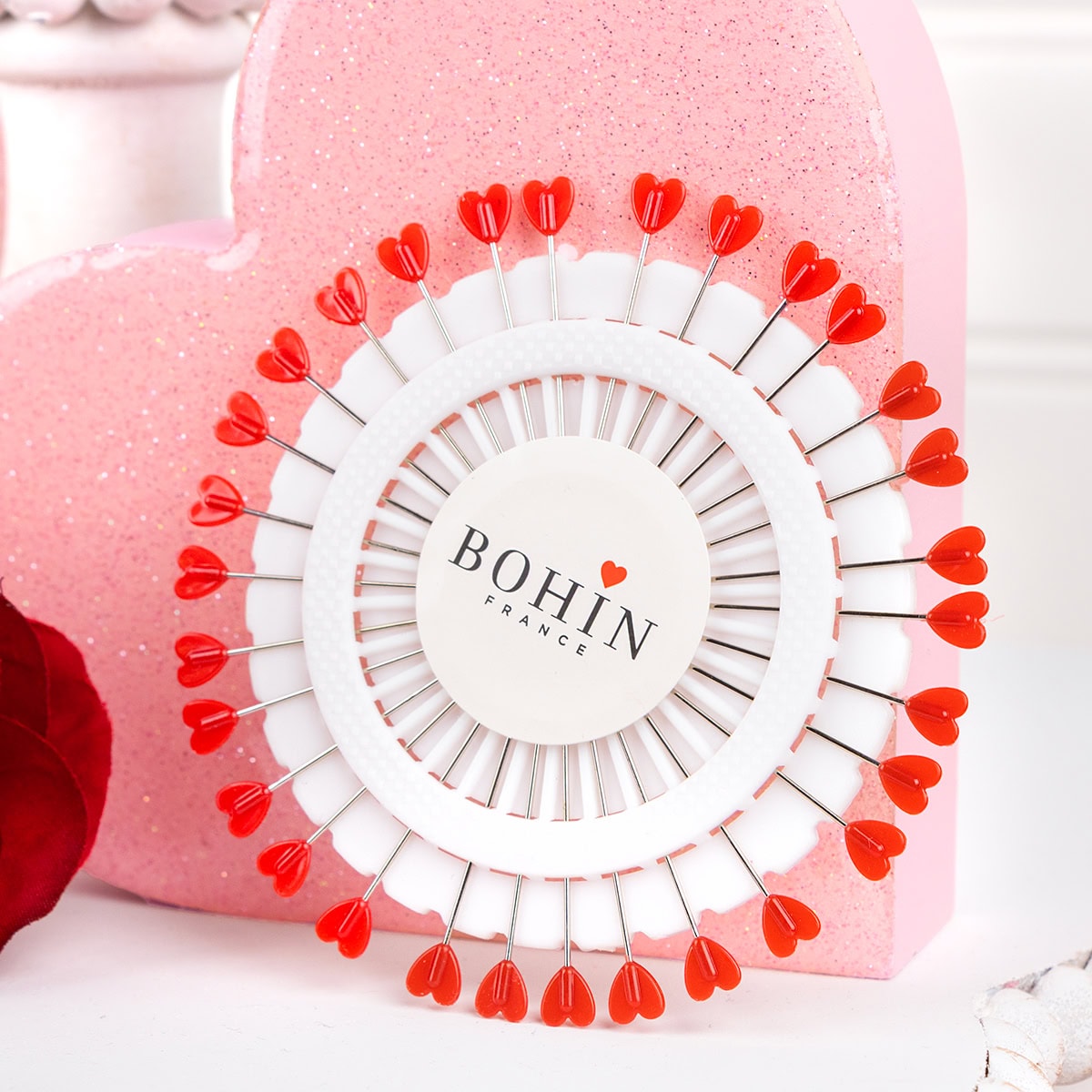 Red Heart Plastic Head Pins by Bohin