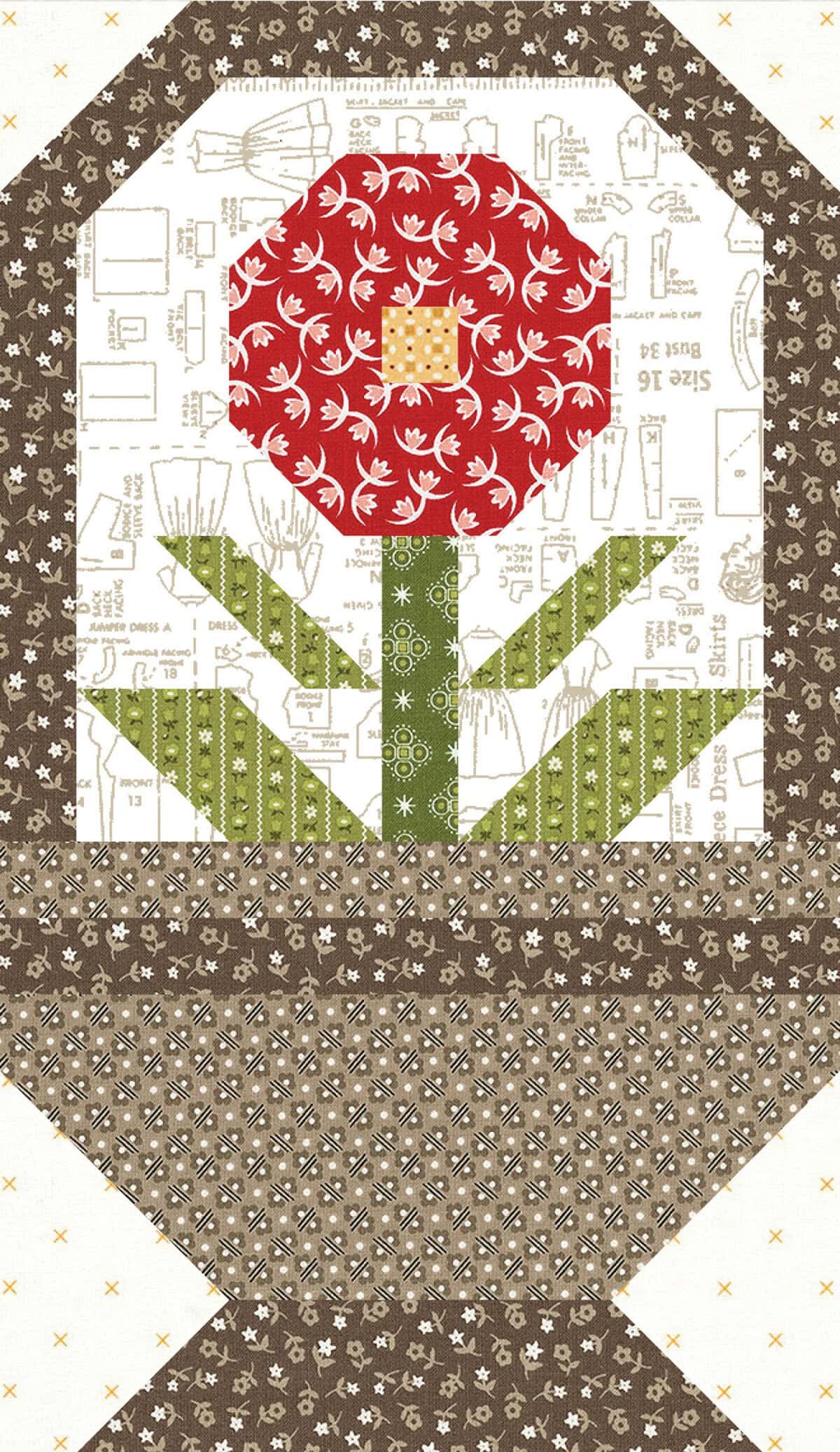 In October, we made a sweet floral block for our Prairie Home Sampler Quilt, and November brings a pocket full of Prairie Posies and a Large Prairie Stockings unit! Keep reading to get all the quilty details for this month’s blocks and to download the Month 8 Prairie Home Sampler Quilt FREE PDF Cutting Guide.