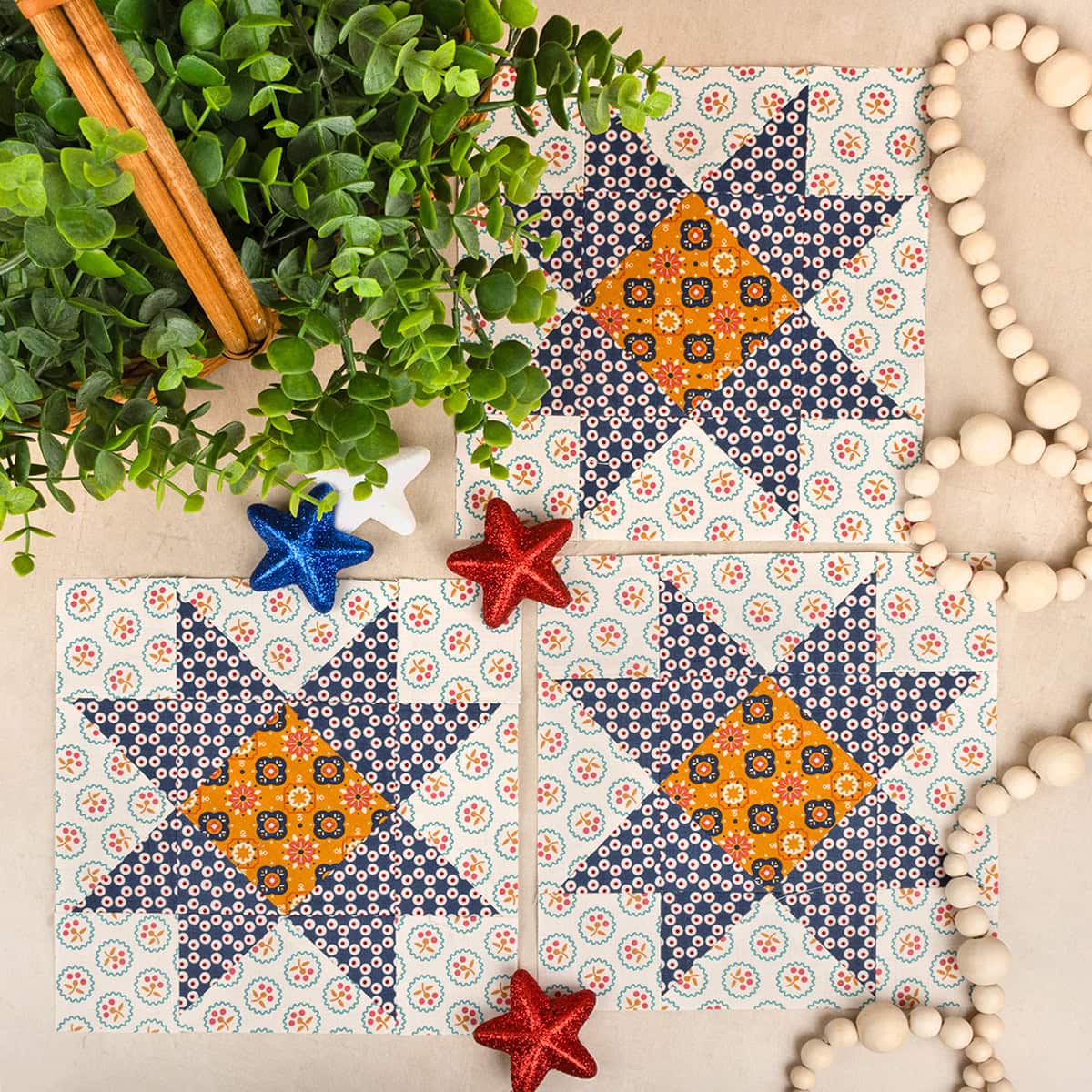 Month seven of the Fat Quarter Shop Americana Flower Farm Quilt Along features cozy blues and bright reds as we sew up the Star Flower and Bell Flower! Keep reading to get all the colorful details for this month’s blocks and to download the Fat Quarter Shop’s Americana Flower Farm Quilt Along Month 7 Color Guide.