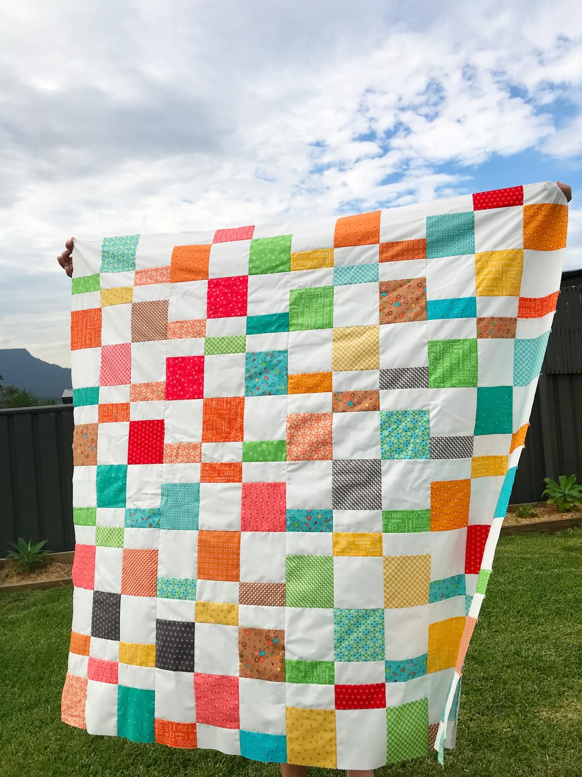 Every other Monday from April 8 to July 1 during this quilt along, we will be showcasing the free patterns we have for each precut and having one blogger make their version of our pattern. This week, continuing the Precut Parade with the Charm Pack! Anorina of Samelia’s Mum made her version of the Charm Pack Cherry, which comes with a FREE pattern and video tutorial. Read on to see her quilt!