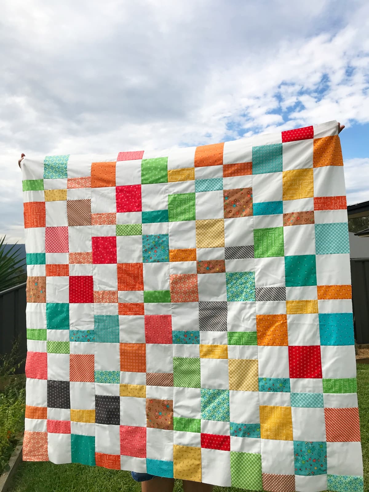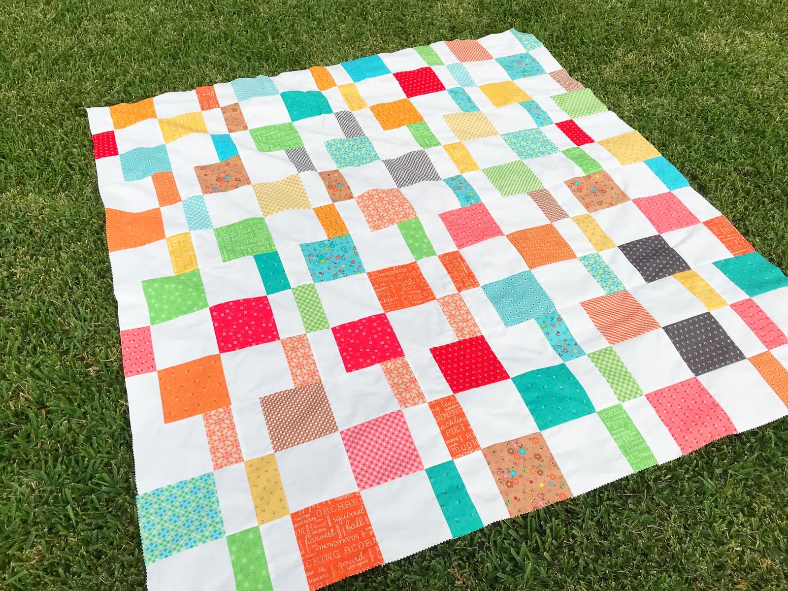 She suggests using a collection with a lot of different colors and prints so fabric placement is easy without any colors or prints touching.