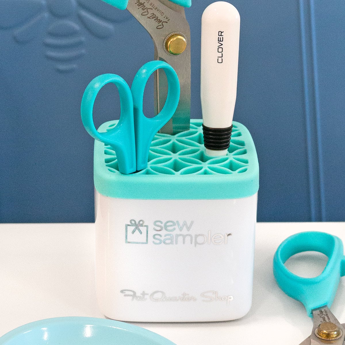 Keep your sewing essentials neatly organized with the Sew Sampler 10 Year Mega Stash ‘n Store, created in celebration of Sew Sampler’s 10th Anniversary! Designed with larger openings, it easily holds larger tools like fabric scissors, glue pens, marking tools, and other must-have notions. Set it beside your machine for a tidy, convenient spot to keep your tools within reach while you sew!