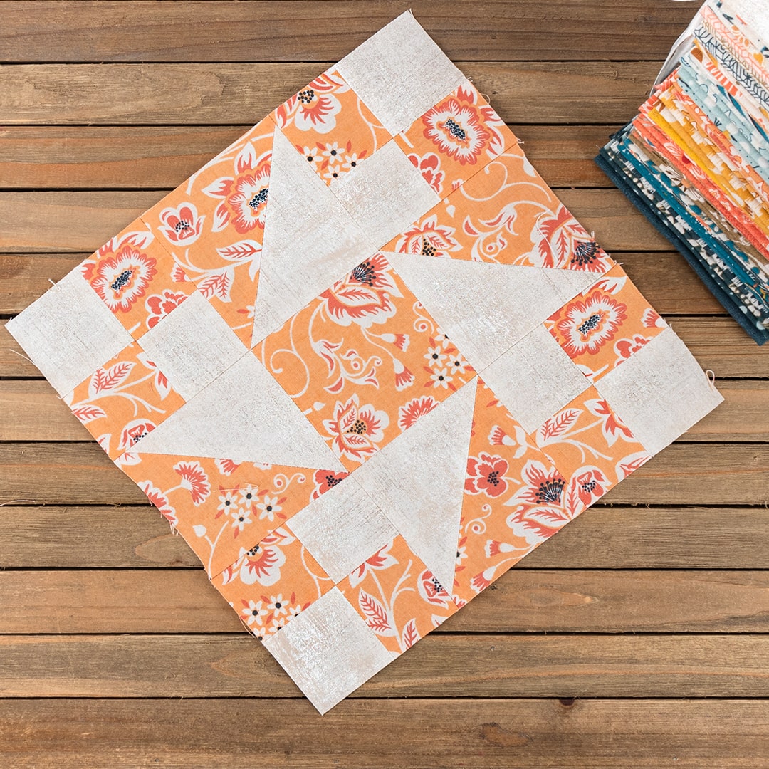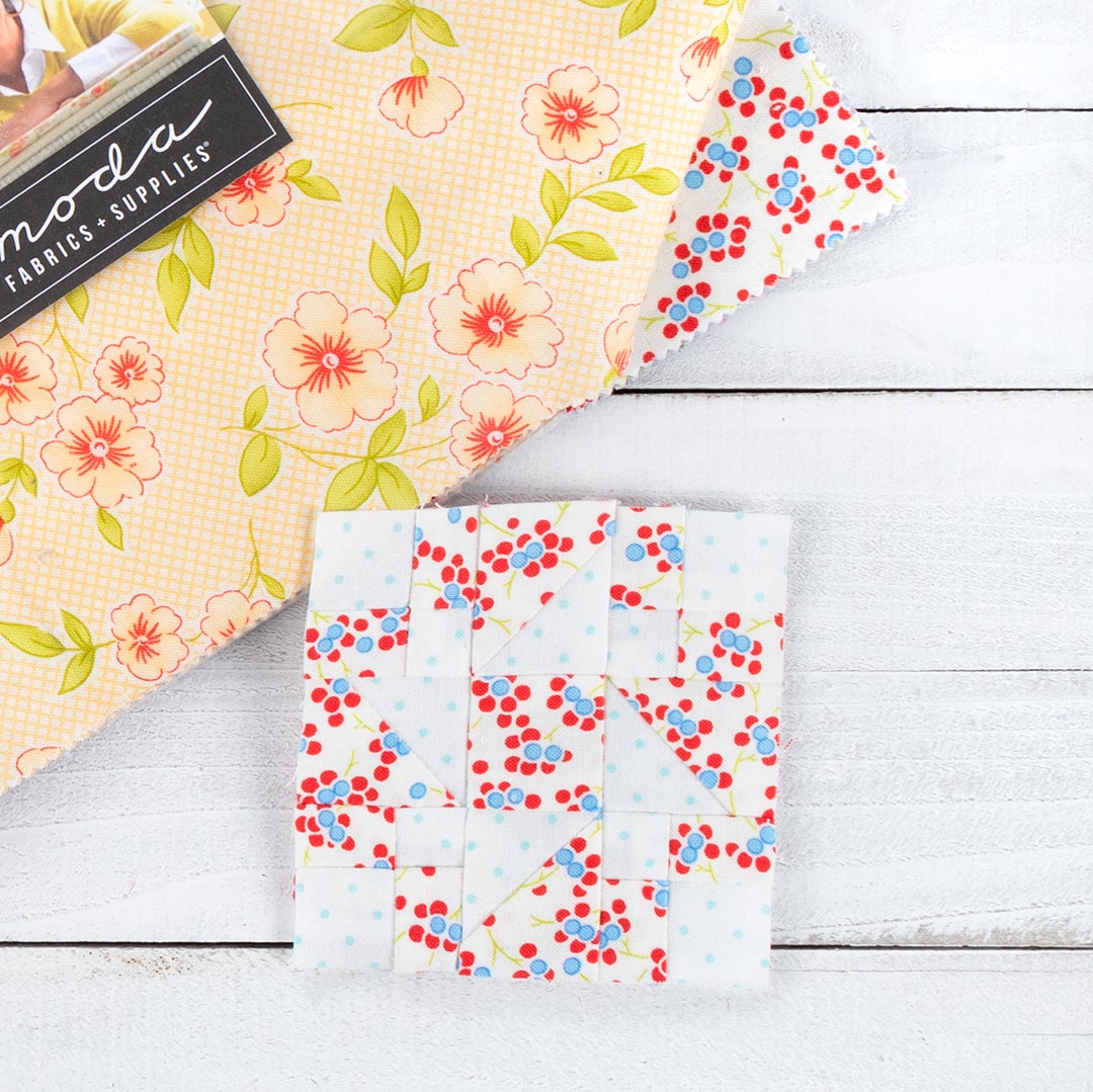 This week’s designers are Barb and Mary! The duo is responsible for all the lovely collections by Me & My Sister Designs for Moda Fabrics. The Cheer block they designed is an easy block that will sew up quick. This one is a welcome reprieve from some of the more challenging blocks, but it looks just as impressive. You can sew along with Kimberly in today’s video tutorial on YouTube for some tips on putting it together.