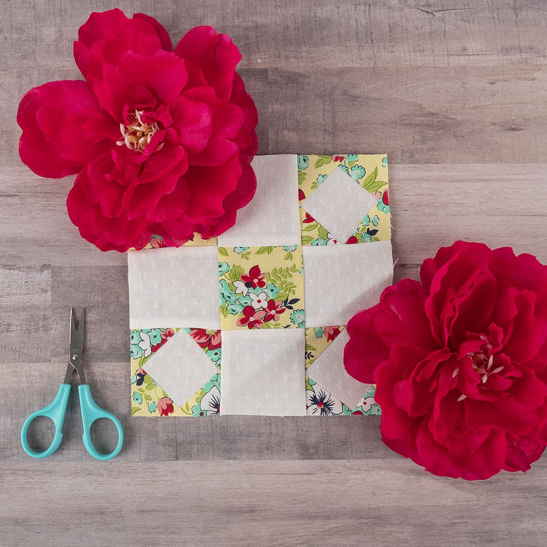 This week’s designer is Camille Roskelley! Camille is a wonderful quilter and pattern designer for Thimble Blossoms, and also works as a fabric designer for Moda Fabrics with her mom, Bonnie Olaveson. She has also written several quilting books! Her most recent book was The Bonnie & Camille Quilt Bee Book that she authored with her mom Bonnie for It’s Sew Emma! If you’re ready to make this block, follow along with Kimberly for a tutorial in today’s video on the Fat Quarter Shop YouTube channel.