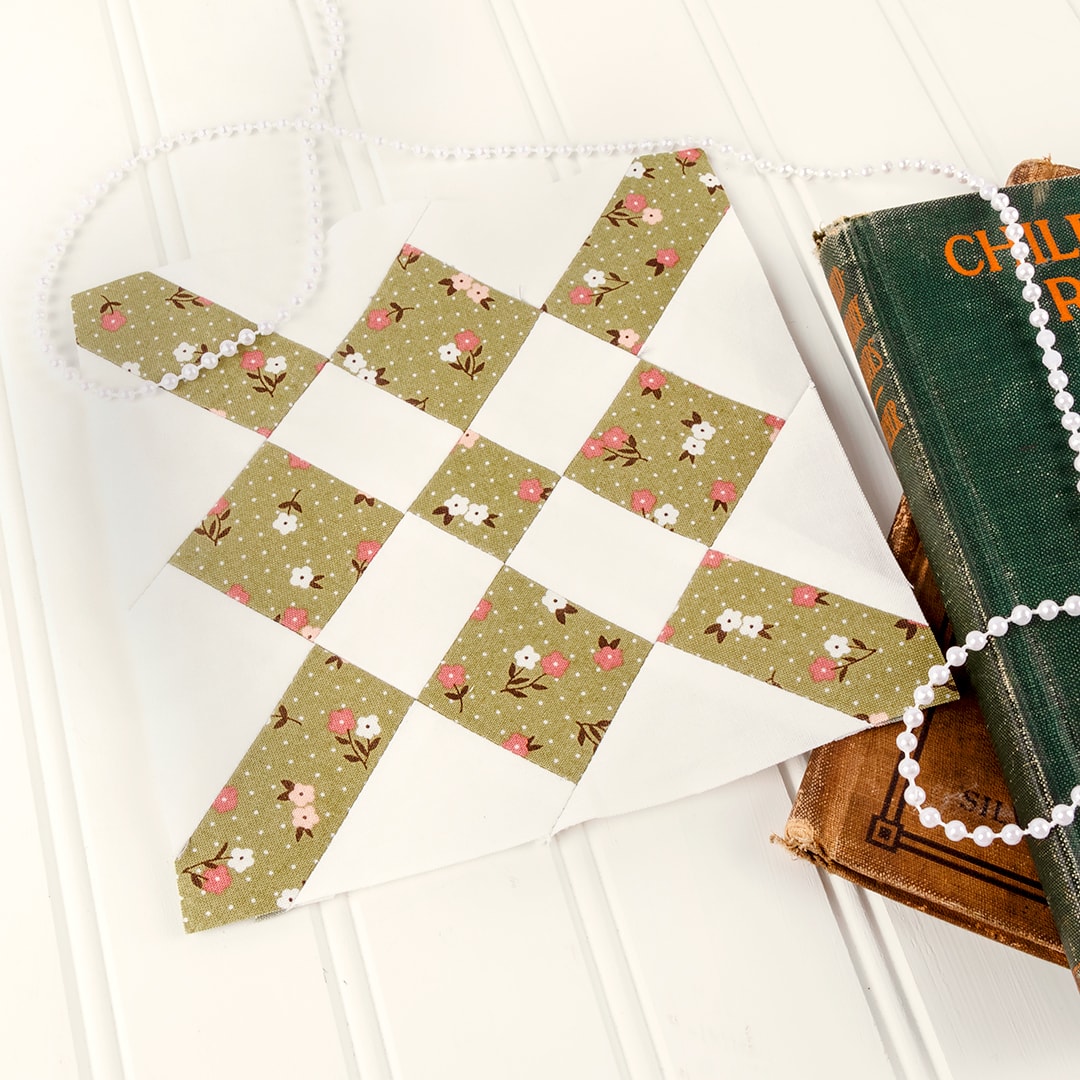 Carrie sewed her blocks using the Scrapbook of Quilts Starter Fat Quarter Bundle. Carrie has embraced the two-fabric/two-color plan for this block! She has two main sewing tips to share on making this block.