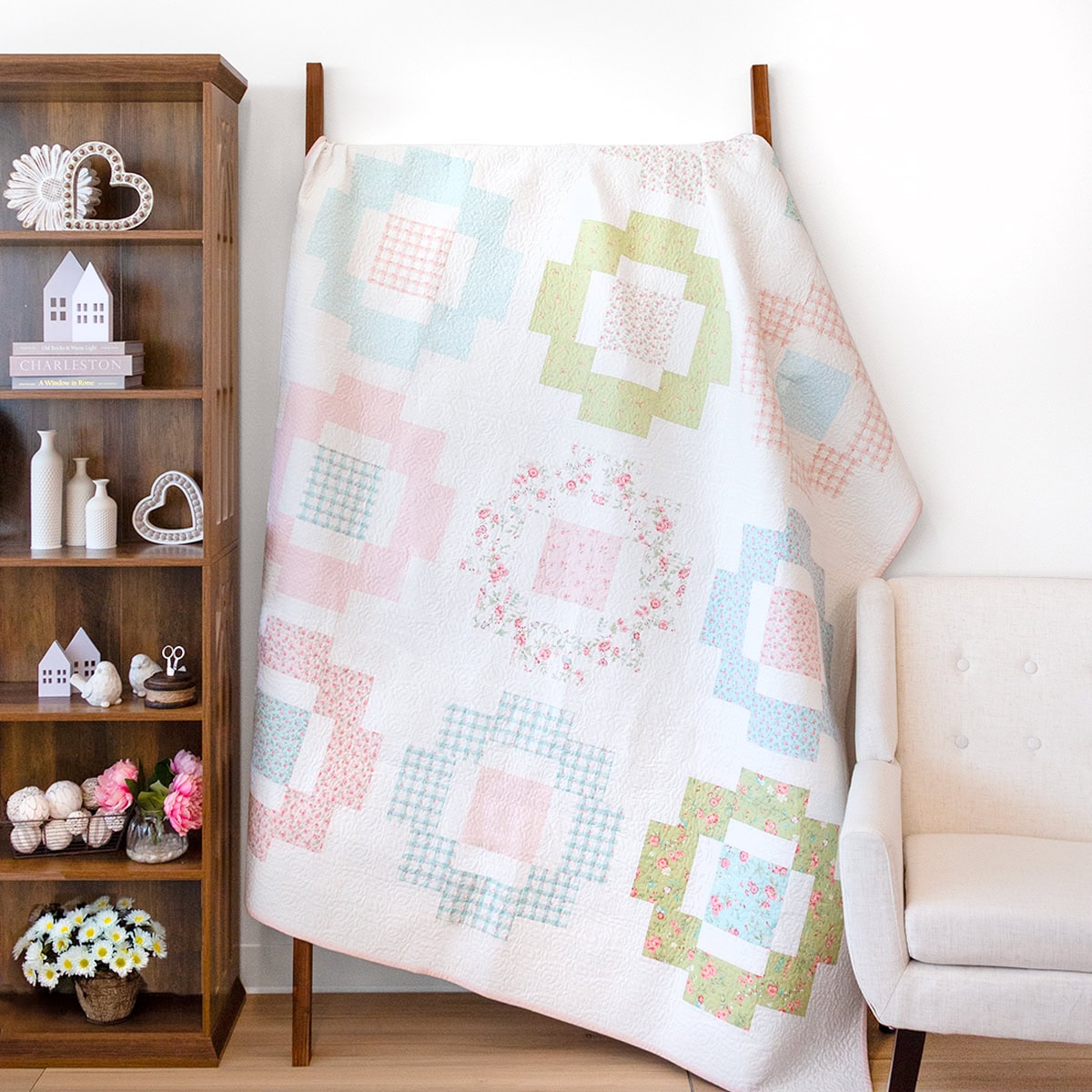 Let’s take a moment to savor the calming call of spring hues and fancy florals with the newest addition to the Shortcut Quilt Series—the Fat Quarter Blooms Quilt! You can start sewing Shortcut Quilts right away, and this one is extra handy for anyone who has a stash of Fat Quarters that you’ve been waiting to use. Our Shortcut Quilt patterns are always free, and they come with a Fat Quarter Shop YouTube video tutorial.