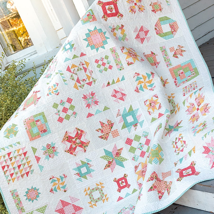Jen B of The Smitten Chicken (@thesmittenchicken) – is sewing her Summer Moon Quilt using a mix of collections by Bonnie & Camille for Moda Fabrics.