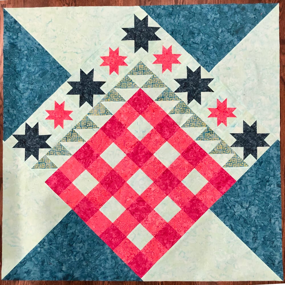 The fourth part of our quilt pattern features artist and quiltmaker Gwen Magee (1943-2011). Her work was often inspired by current events, centered on issues of discrimination, racial injustice, social inequalities and the condition of African Americans. One of Magee’s notable series is a collection of 12 quilts inspired by the song “Lift Every Voice and Sing” by James Weldon Johnson that portrays the brutality and injustices of slavery and racism. Magee’s work has been exhibited internationally and is found in the Smithsonian American Art Museum and the Mississippi Museum of Art. Learn more about Gwen Magee.