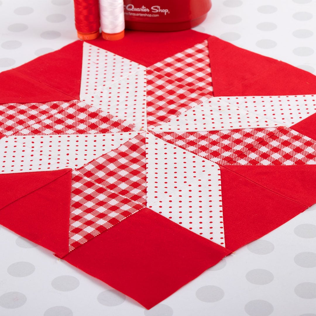All you’ll need to get started is the Vintage Christmas Quilt Book and your choice of fabrics (get fabric requirements here)! We are making our version of the Two Color Quilts using the Confetti Cotton Solids by Riley Blake Designs and Pin Dots and Bake Sale 2 by Lori Holt.