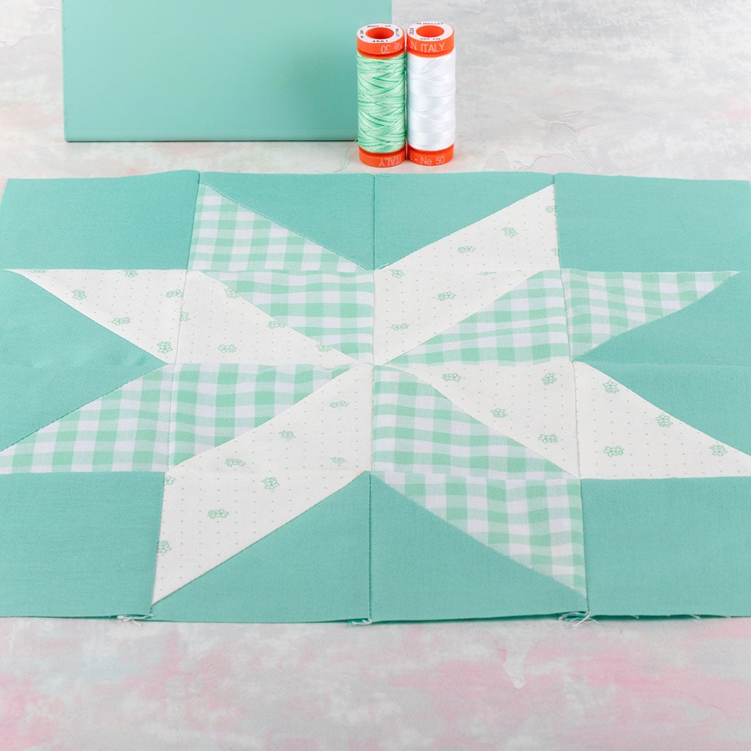 We are sew excited to continue the Two Color Quilt Sew Along with the fifth block: the Christmas Star Block! The Two Color Quilt Sew Along is a spin-off of the Vintage Christmas Sew Along we did with Lori Holt (of Bee in my Bonnet) on the blocks in her Vintage Christmas Book to make the Vintage Christmas Sampler Quilt. However, we were clamoring to do more with the Two Color Quilts she showed in the same book! So this year, we created a sampler quilt with Lori’s block to make the Two Color Quilt, hence the Two Color Quilt Sew Along! You won’t believe how much fun you can pack into a monochromatic fabric set!